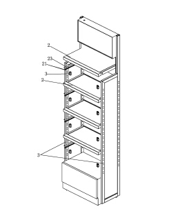 至少一可拆卸的層板組件,包括一層板本體、一光源和二導(dǎo)電條,所述光源和二導(dǎo)電條均設(shè)于層板本體下方,該二導(dǎo)電條分別傳導(dǎo)連接該光源的正負(fù)極;